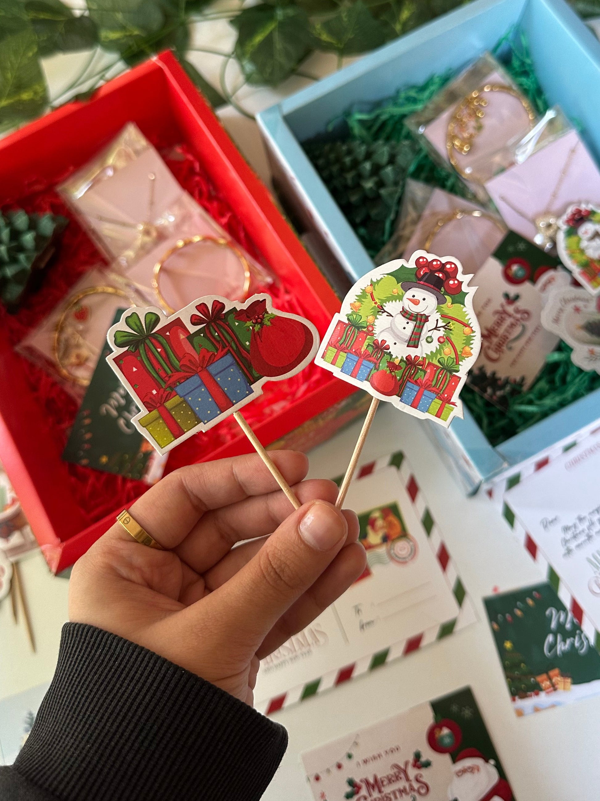 This hamper can be customised. It includes 4 anti tarnish and 18K gold plated jewellery pieces that you can select from our website once you place your order .